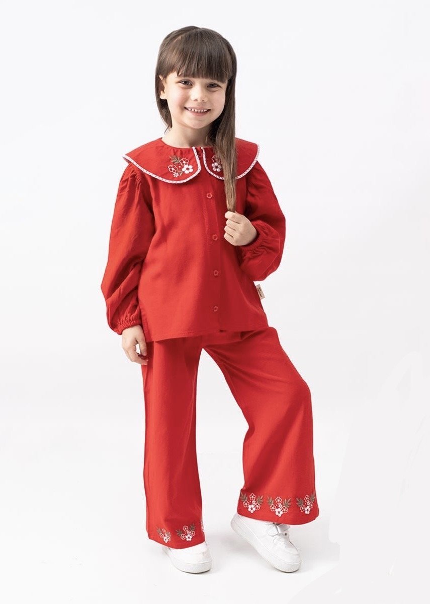 طقم بناتي باللون الأحمر للأعمار ٣-٧ سنوات