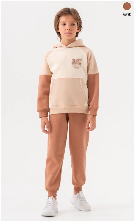 - طقم مكون من قطعتين للأطفال الأولاد، مصنوع من قماش سميك ومبطن من الداخل بالفرو، مع ياقة دائرية وتفاصيل جيوب في الأمام.