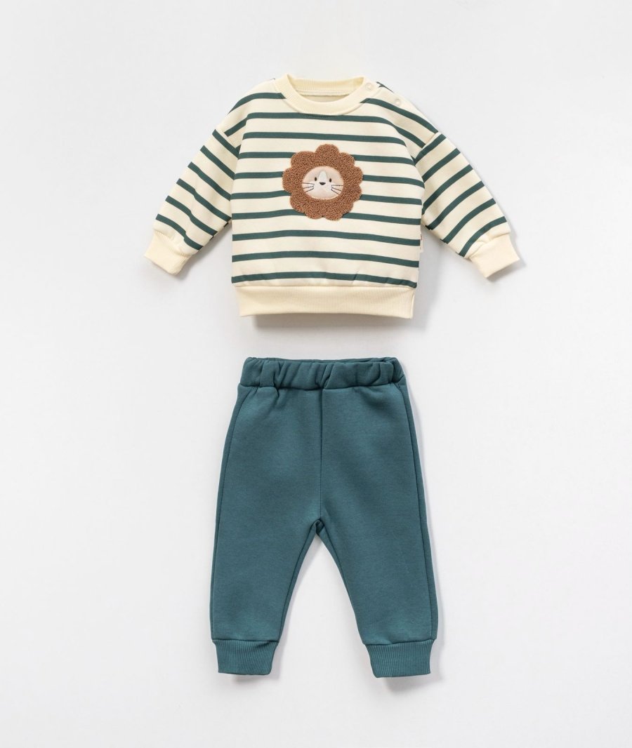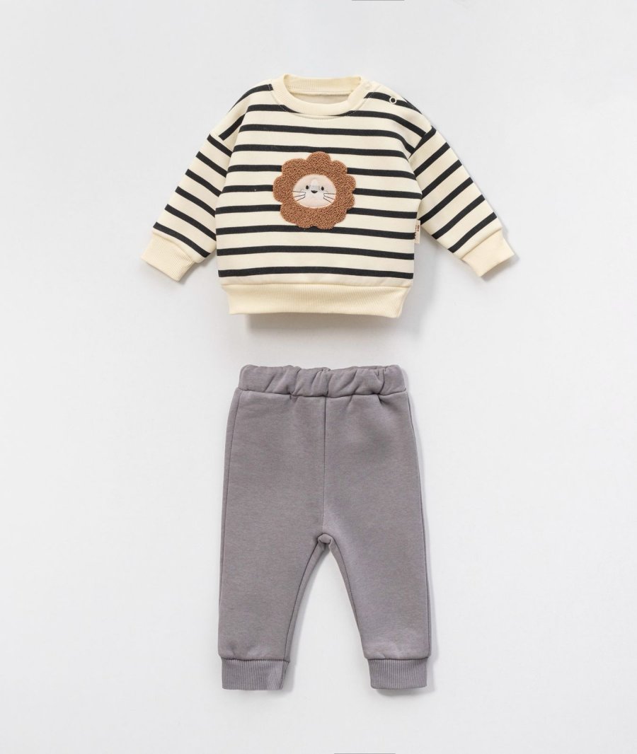 طقم ولادي شتوي مع رسمة أسد للأعمار ٦-٢٤ شهر