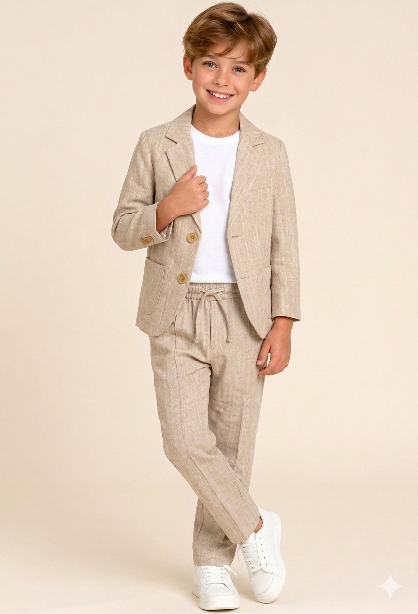 بدلة ولادي باللون البيج بتصميم "سبور" مريح - مناسبة للحفلات والأعياد