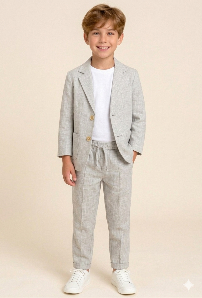 بدلة ولادي باللون الرمادي بتصميم "سبور" مريح - مناسبة للحفلات والأعياد