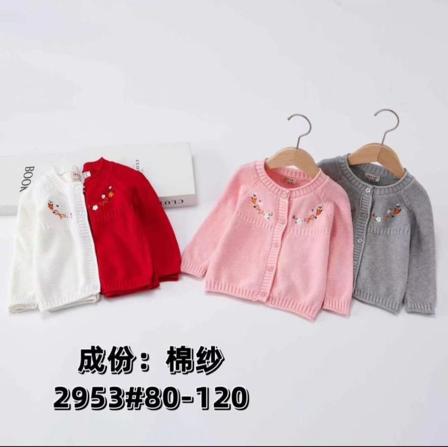 جكيت بناتي صوف باللون الأحمر مع تطريز ورود للأعمار ١ ل ٥ سنوات
